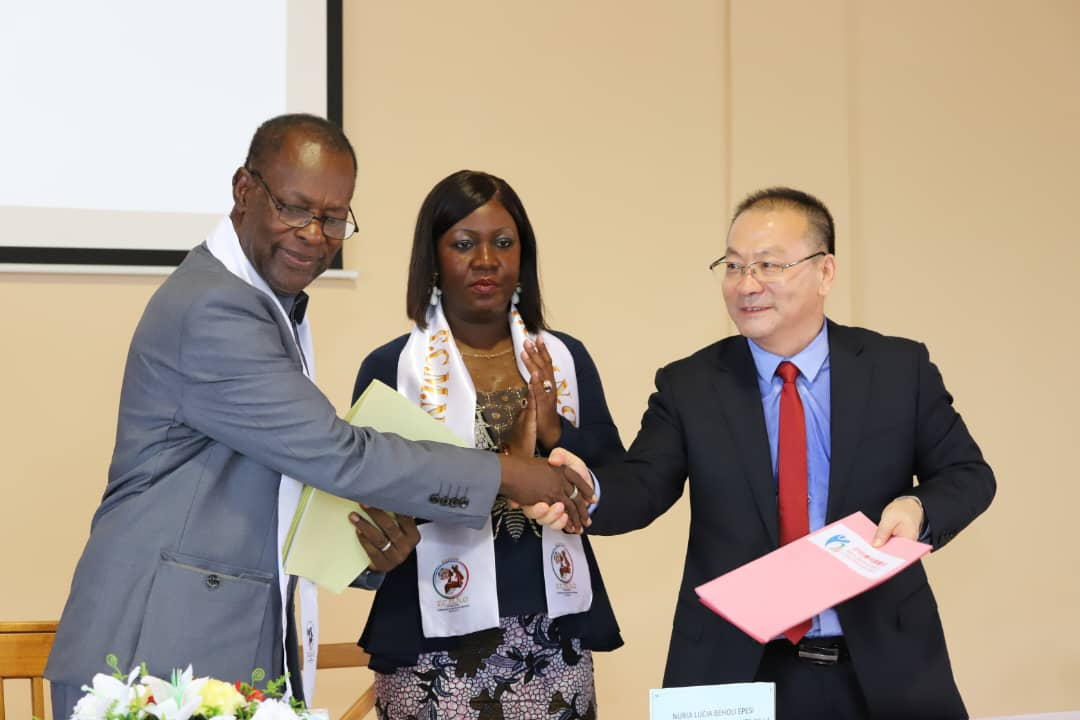 On May 27th, the event of caring for the health of African orphans, themed "Warm Children's Hearts, a China-Africa Joint Action", was grandly held in the city of Riyaba, Equatorial Guinea. Officials from the Ministry of Health and Social Welfare, the Ministry of Social Affairs and Gender Equality, the First Lady Foundation, and other departments in Equatorial Guinea, as well as representatives from the Chinese Embassy in Equatorial Guinea, the Chinese Medical Team, the Chinese Chamber of Commerce in Equatorial Guinea and member enterprises, along with over 200 local school teachers and students, attended this event. Zheng Dejun, the General Manager of Equatorial Guinea Zhengwei Company and Deputy President of the Chinese Chamber of Commerce in Equatorial Guinea, participated in the event and signed, on behalf of the Chinese Chamber of Commerce in Equatorial Guinea, a donation certificate with the Secretary General of the First Lady Foundation.
