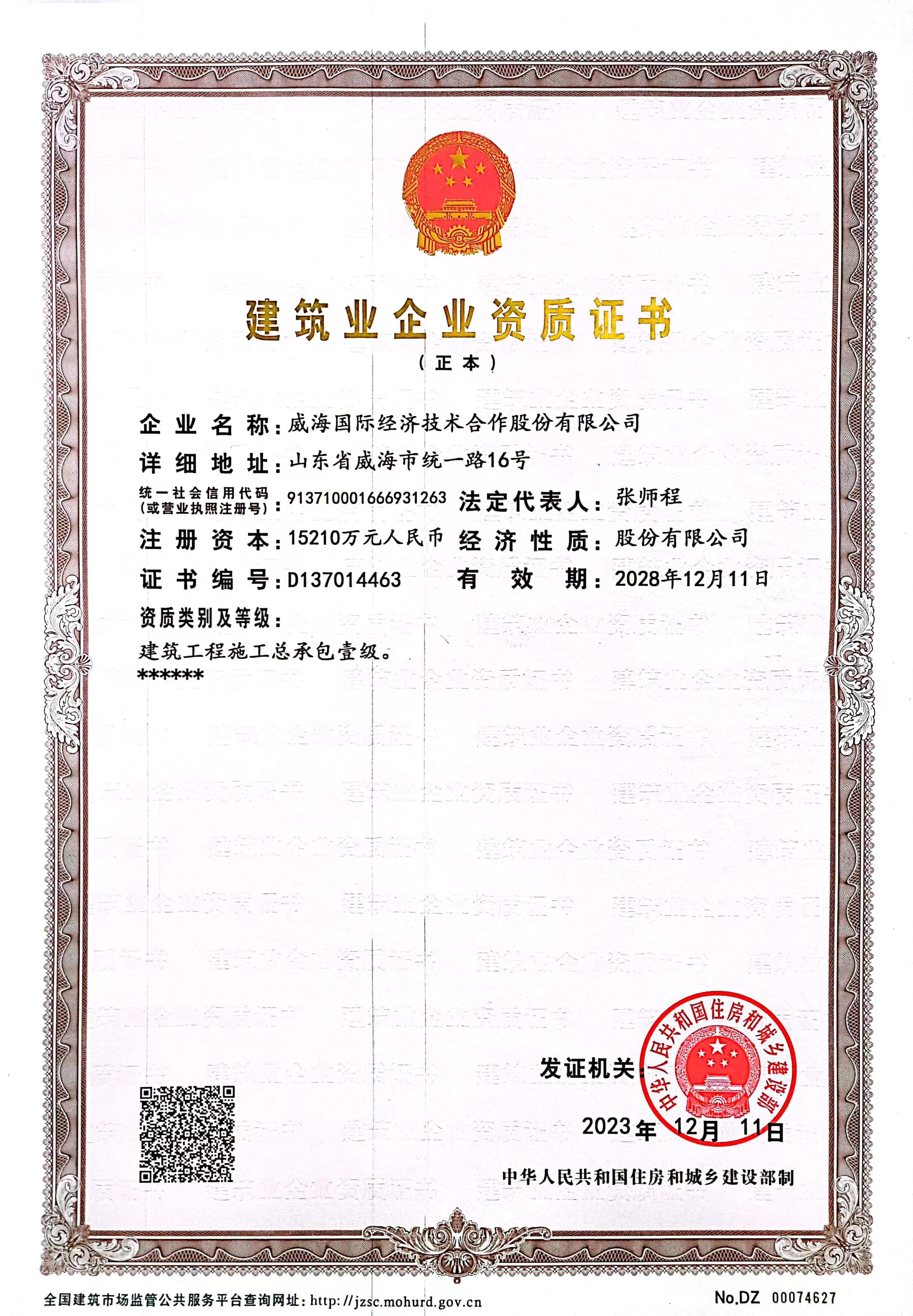 建筑工程施工總承包壹級資質(zhì)