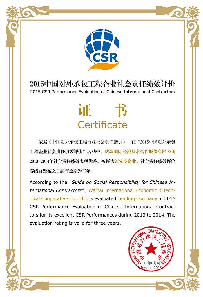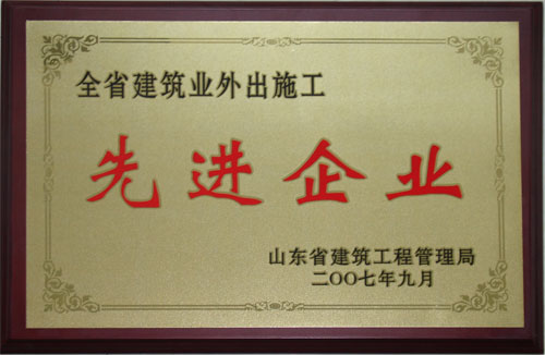 山東省登録地以外施工建設(shè)先進企業(yè)