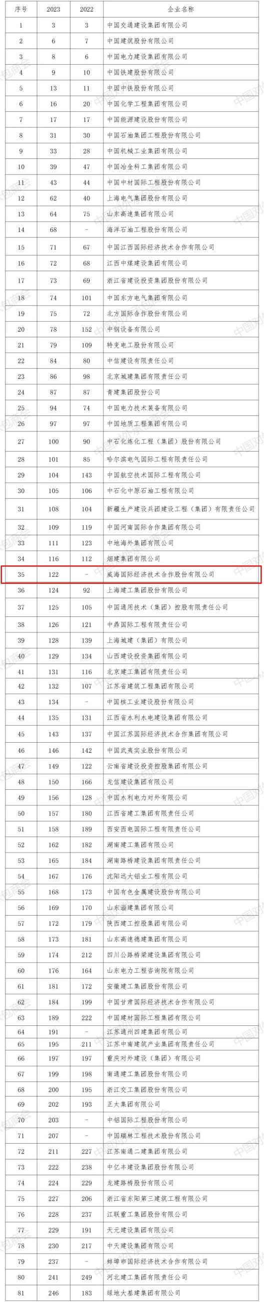 8月23日、2023年度『エンジニアリング?ニュース記録(ENR)』米誌における「世界最大手國際請負(fù)業(yè)者ランキング250社」が発表された。當(dāng)社はランキング第122位として再選出され、中國系企業(yè)において35位となった。